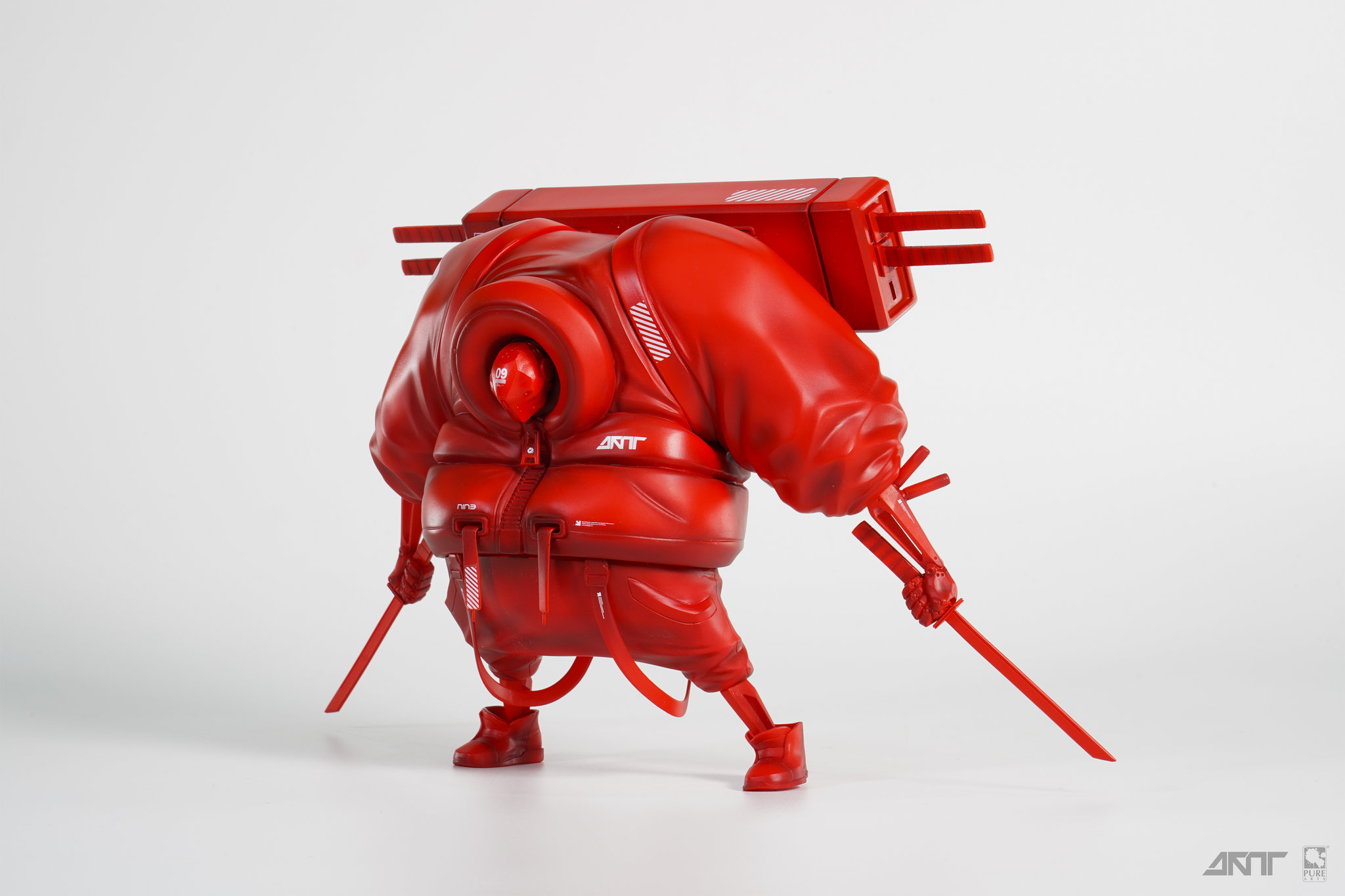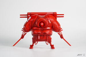 This original character design of a futuristic, chunky samurai is the perfect blend of both a badass character with perfectly designed shapes. His overall look is completed by his puffed jacket and stylish katana backpack.