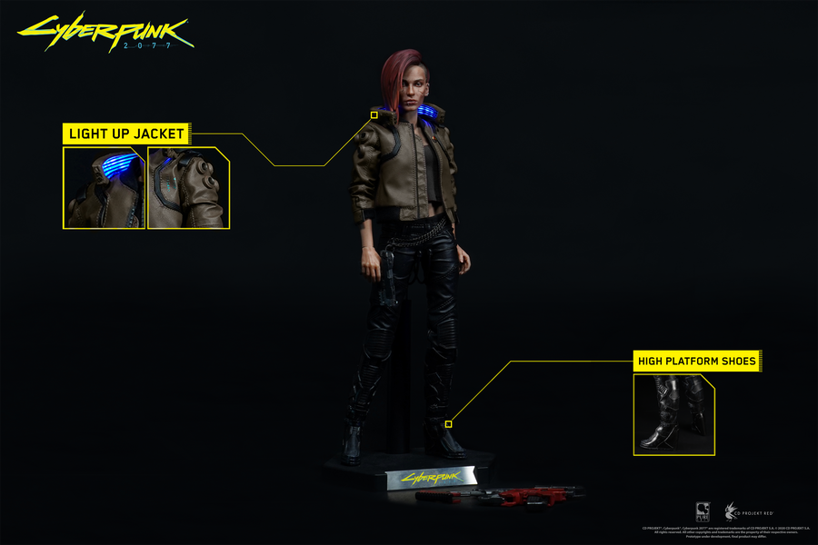 All of V's attitude is very well captured in this 1/6 scale articulated figure and the Cyberpunk ambiance is even brought to life thanks to an ingenious LED device hidden under the leather jacket collar.