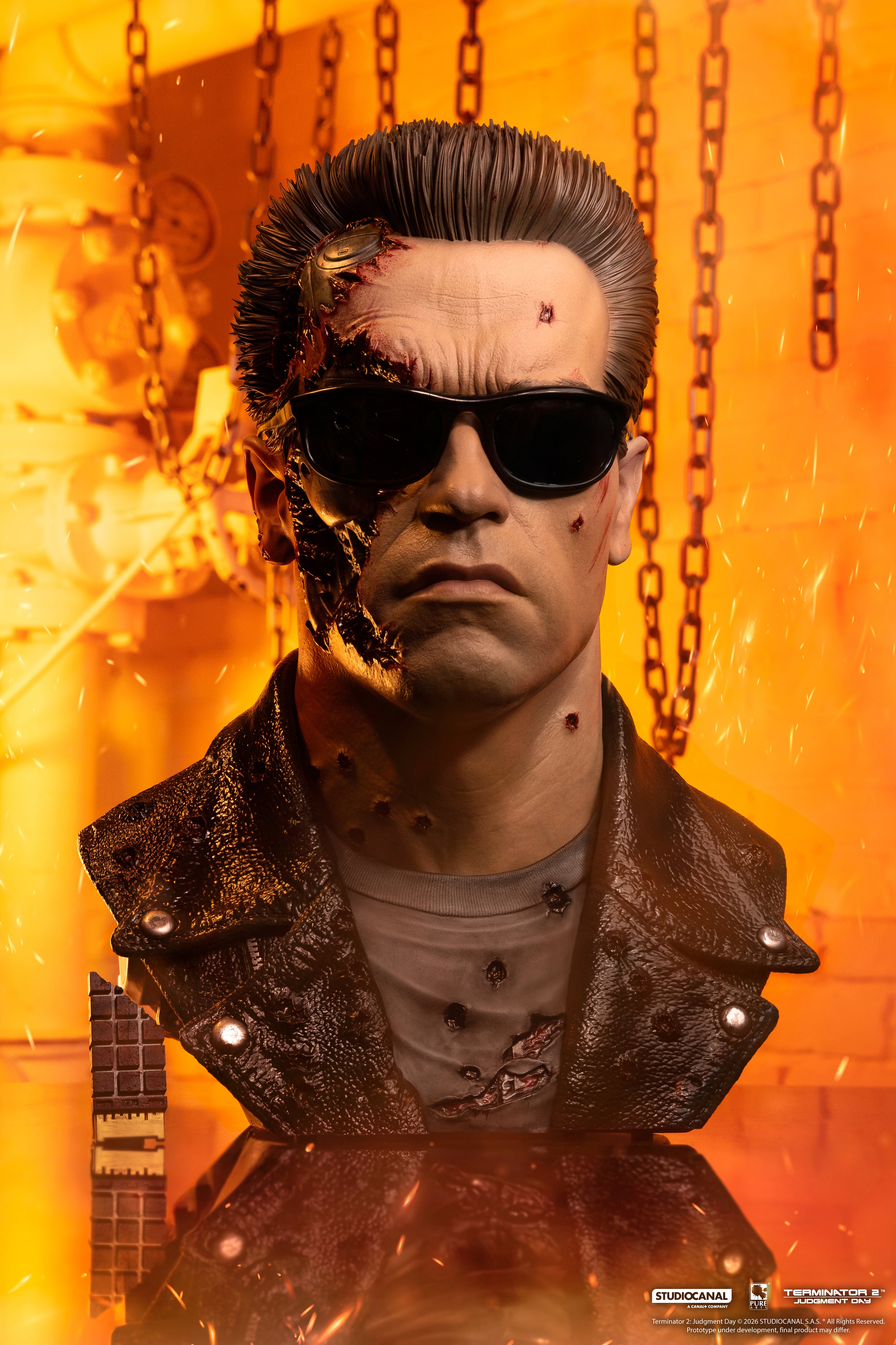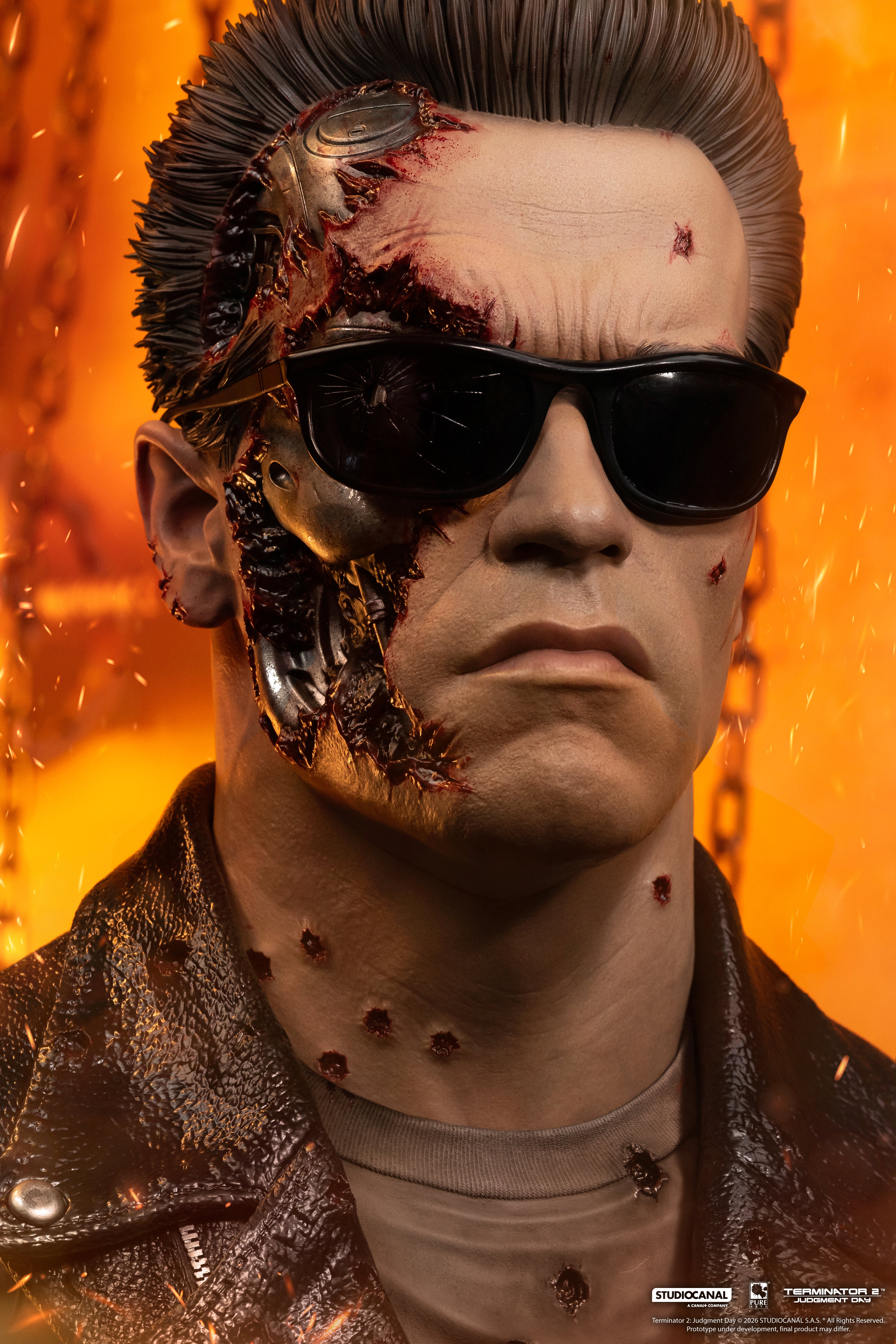 - Hyperdetailed sculpt of the T-800 featuring the likeness of Arnold Schwarzenegger