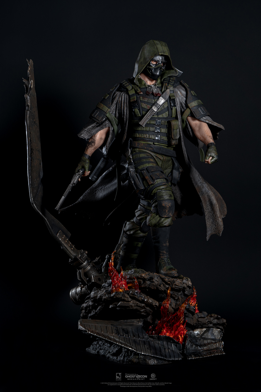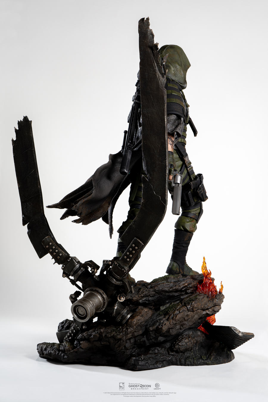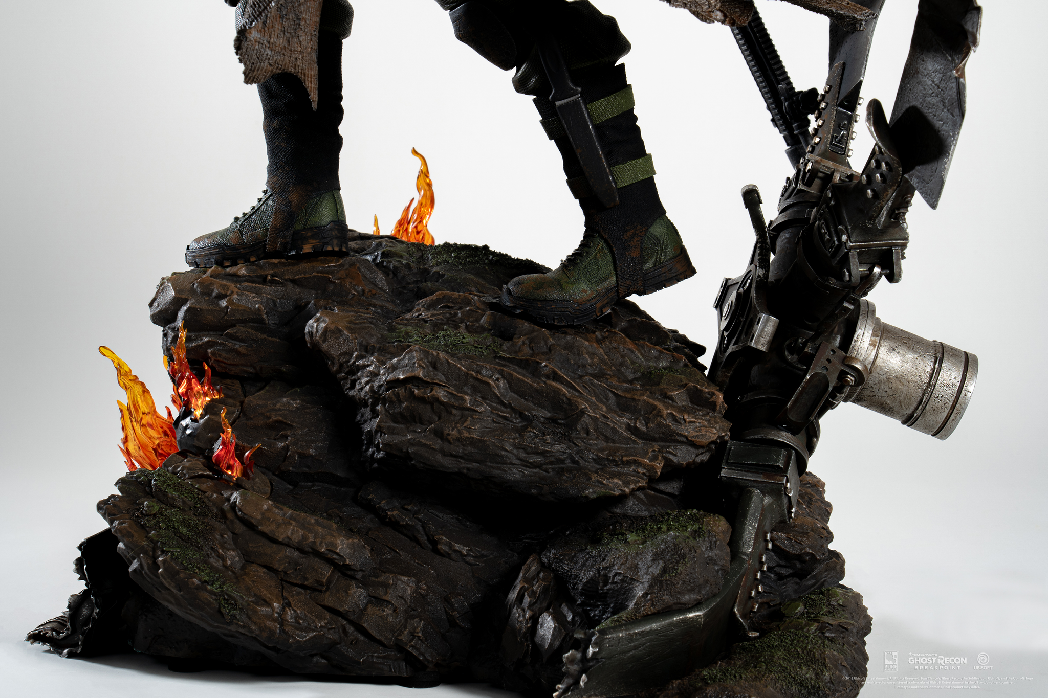 Made especially for the newly released Ghost Recon Breakpoint, Pure Arts has created this impressive 1/4 statue representing the former Ghost leader and the leader of the Wolves. Revel in all the realistic sculpting and hand-painted details of this masterpiece, all made in polyresin. This statue comes with interchangeable guns on his right hand, and a LED system included in the base to make the fire even more lifelike!