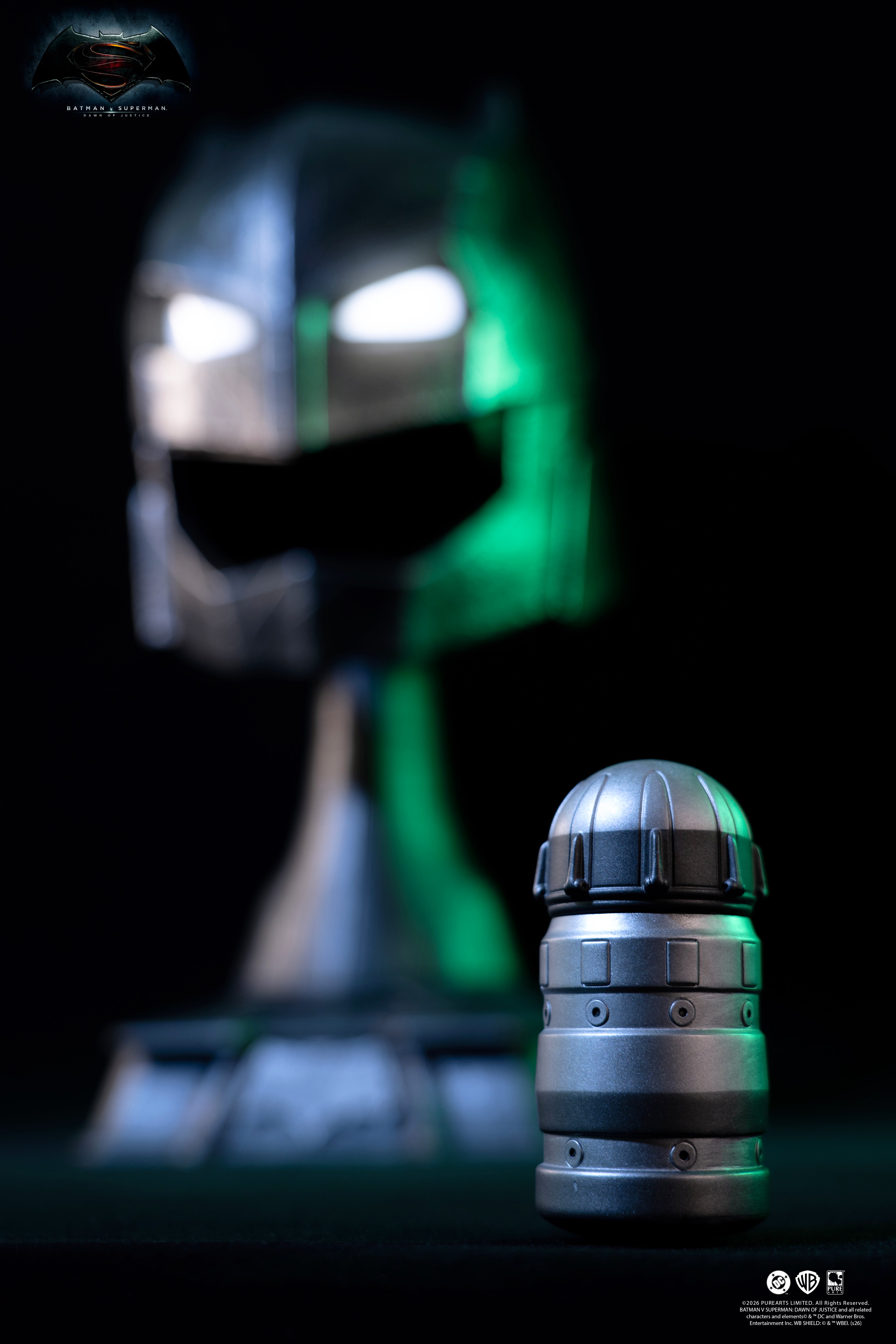 Limited to 250 units, the Batman v Superman: Dawn of Justice Armored Batman Cowl Exclusive Edition includes a grenade replica at no extra cost, a distinctive element of Batman’s powerful armored arsenal against the Kryptonian.