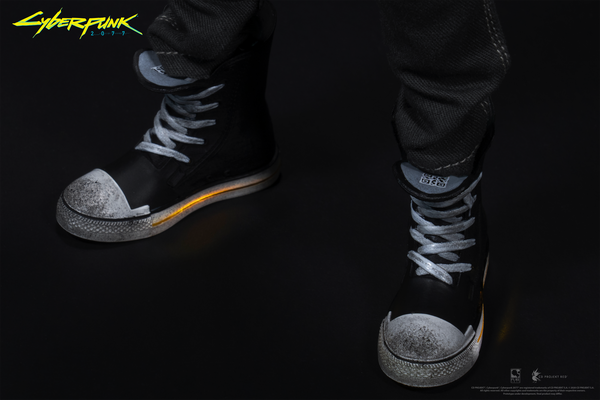 All of V's attitude is very well captured in this 1/6 scale articulated figure and the Cyberpunk ambiance is even brought to life thanks to an ingenious LED device hidden under the leather jacket collar.