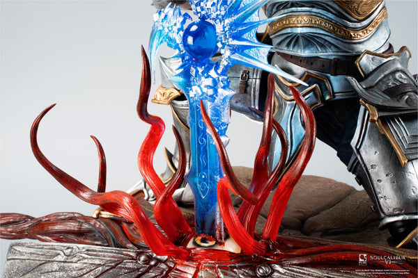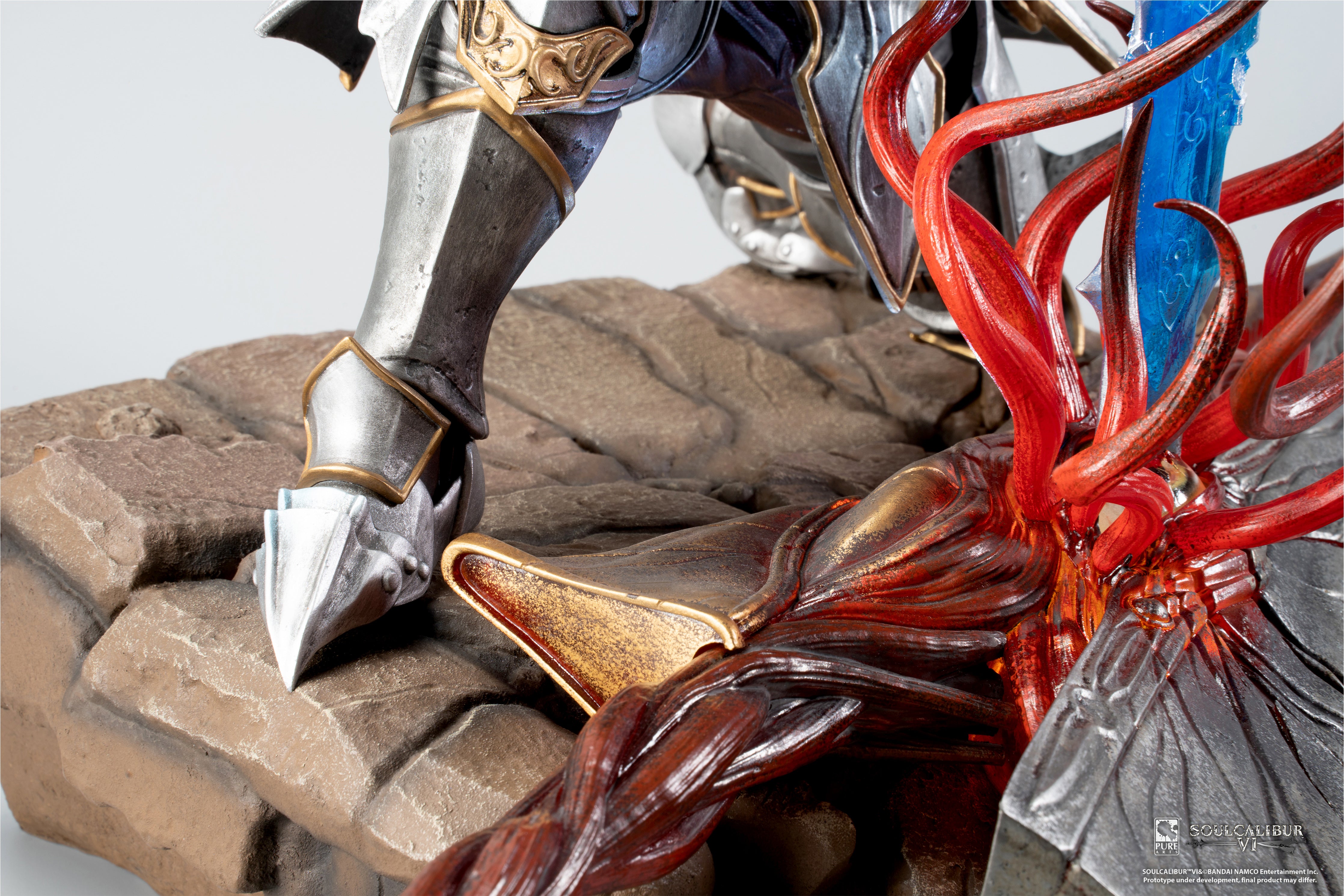 Siegfried unleashes the Soul Embrace as he drives the Soul Calibur through the Soul Edge as seen in the opening scene of SOULCALIBUR III. Enjoy the beautifully detailed sculpt on a massive base including LED effects in a large 1/4 scale format!