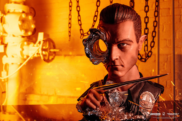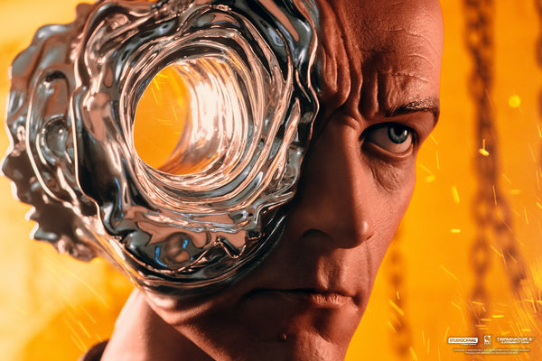 Featuring a liquid molecular brain, the ability to shape-change and mimic objects and beings of similar size, Skynet’s T-1000 is the ultimate killing machine. Portrayed by the iconic Robert Patrick, PureArts brings the T-1000 to life in our 1:1 scale Art Mask series!