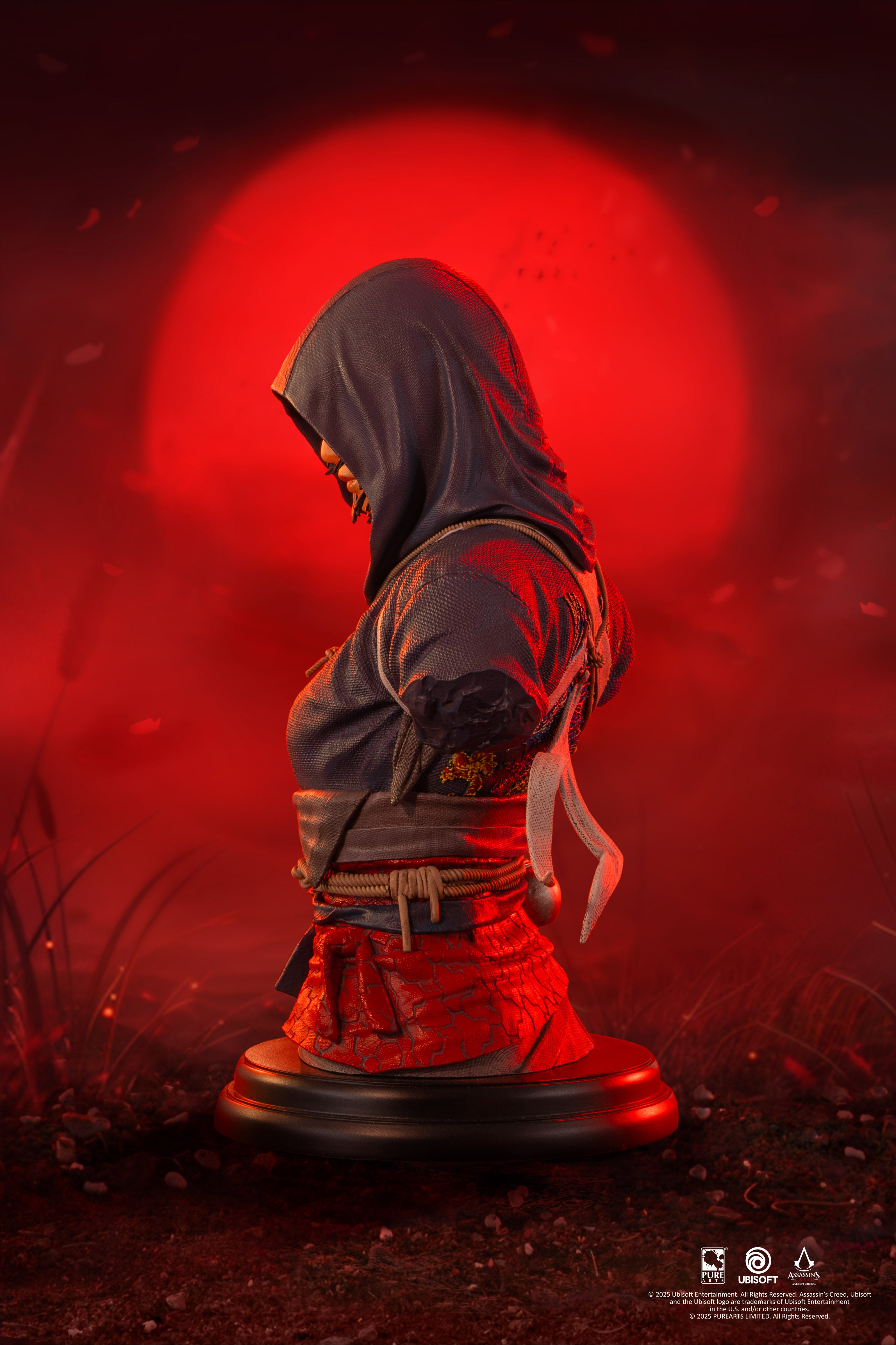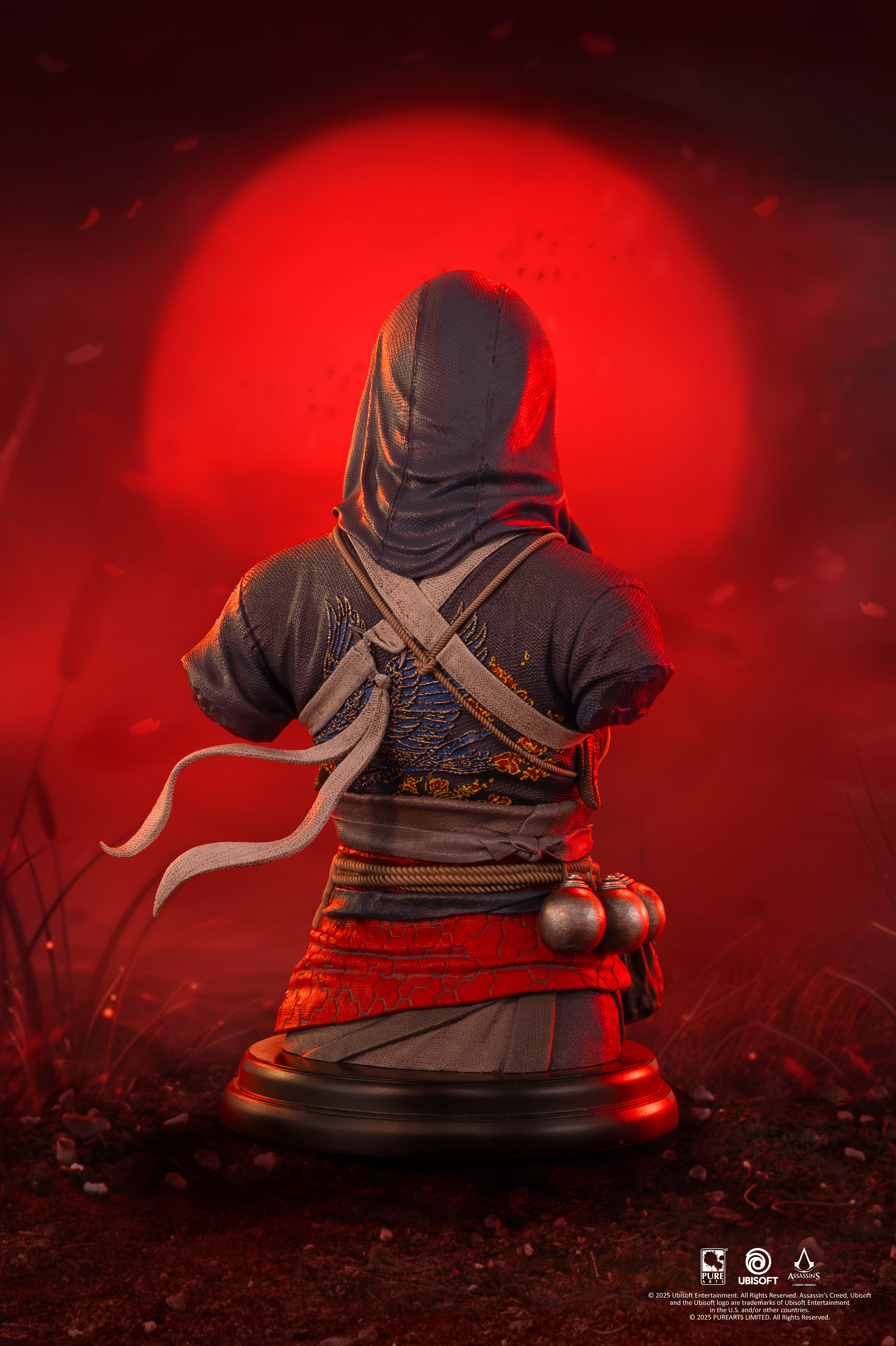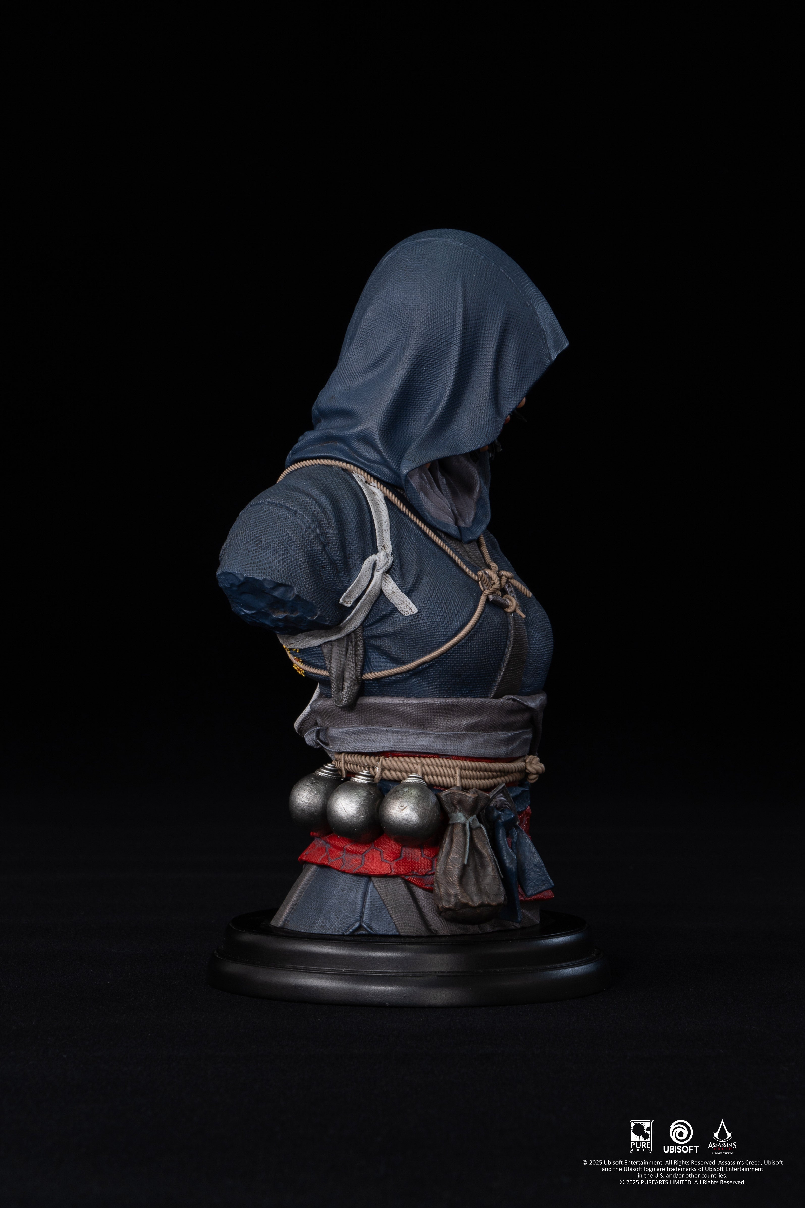 L'Assassin intrépide Naoe est prête à défendre son peuple et à inaugurer une nouvelle ère pour le Japon. Le buste capture sa détermination et sa détermination farouche. Sa tenue traditionnelle de shinobi est savamment sculptée avec l'emblème de son clan détaillé sur son dos, symbole de son héritage et de sa loyauté inébranlable. Le buste à l'échelle ¼ d'Assassin's Creed Shadows Naoe de 10 pouces complète magnifiquement la collection PureArts Assassin's Creed Shadows.