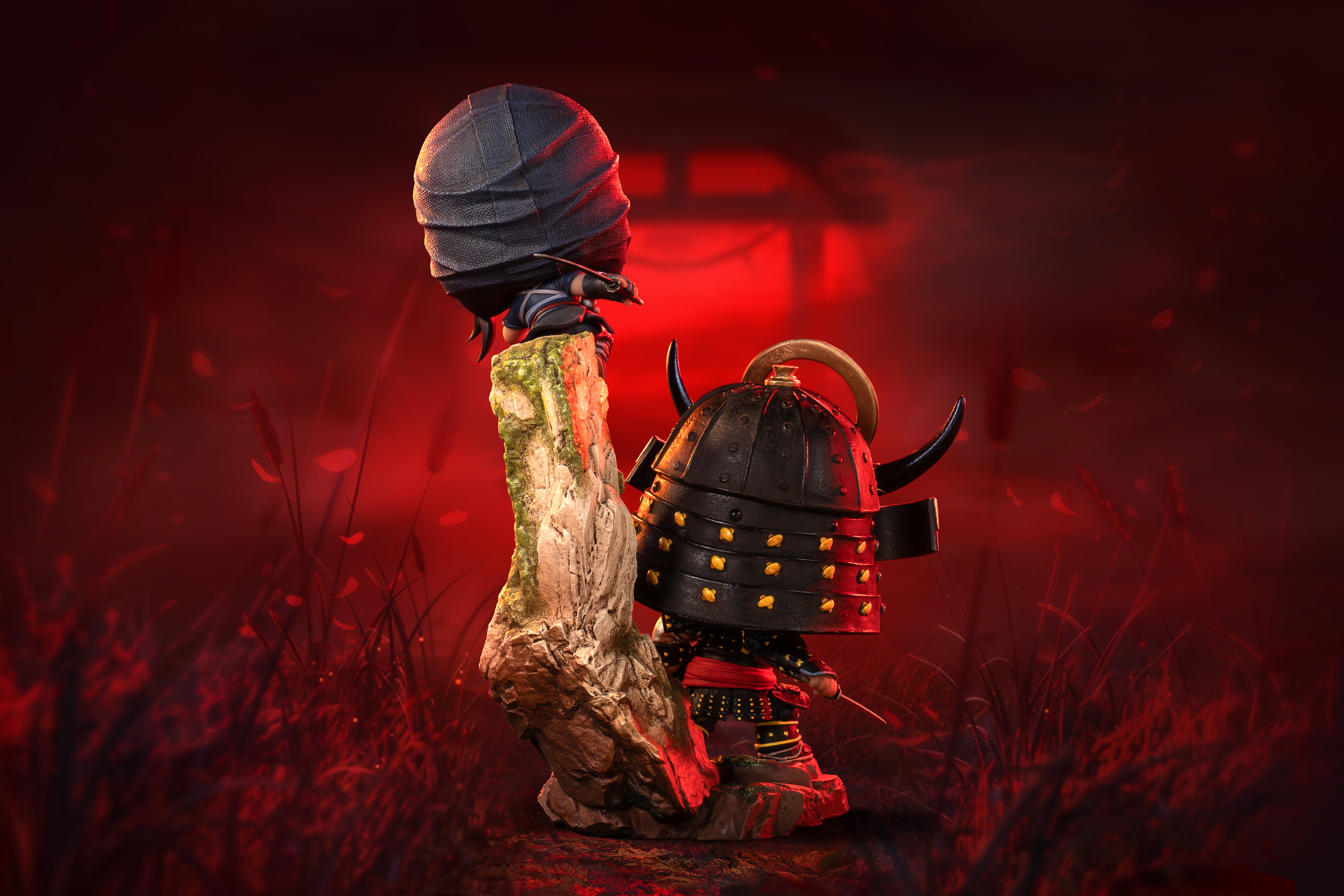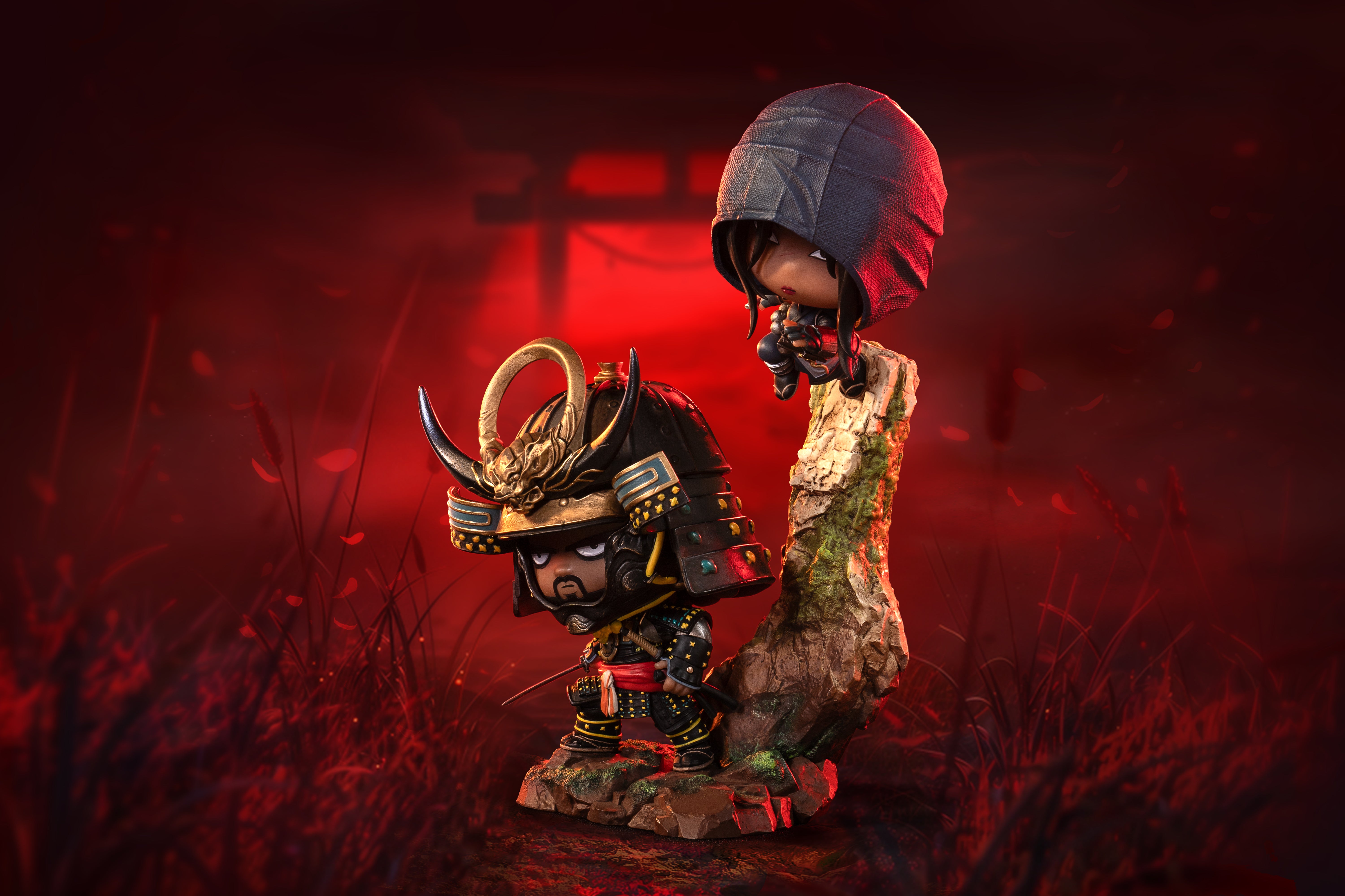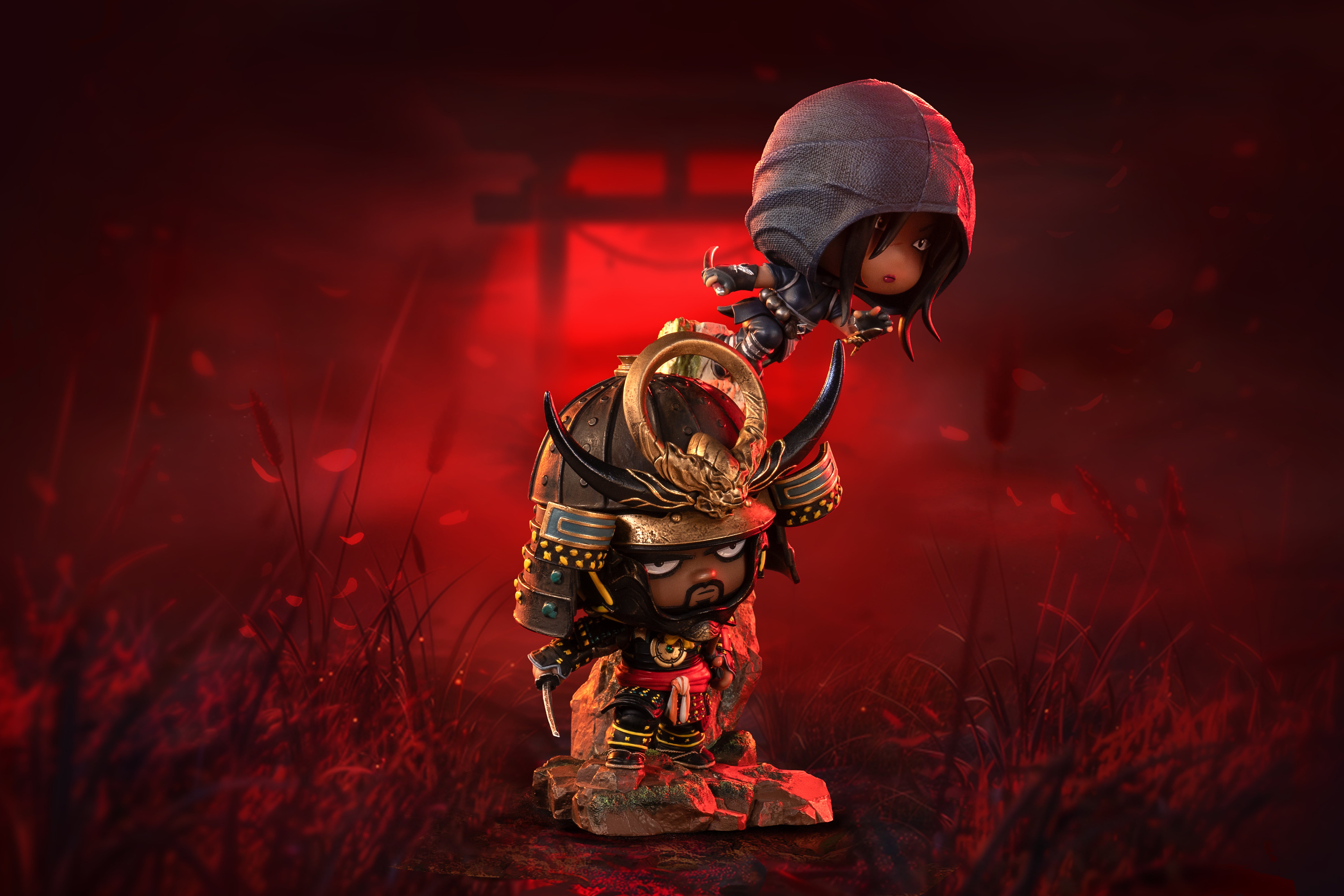 Figurine en PVC Naoe et Yasuke d'Assassin's Creed Shadows de Qlectors