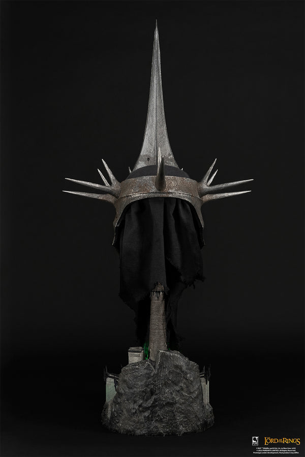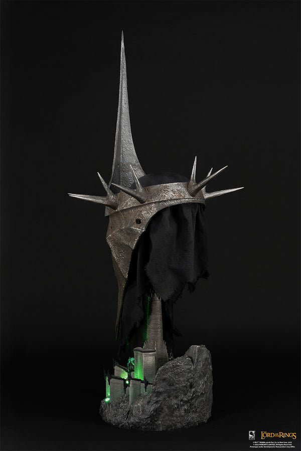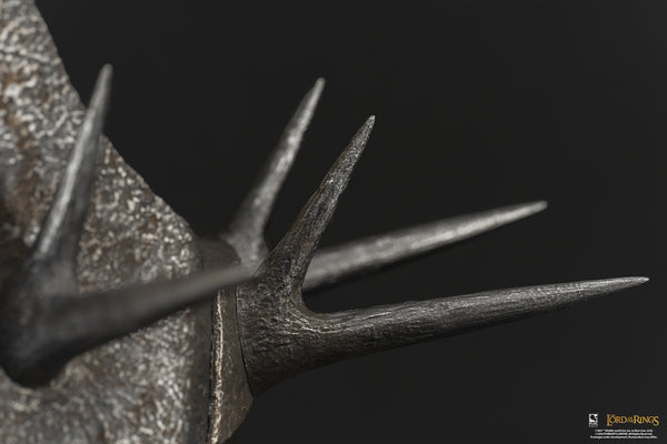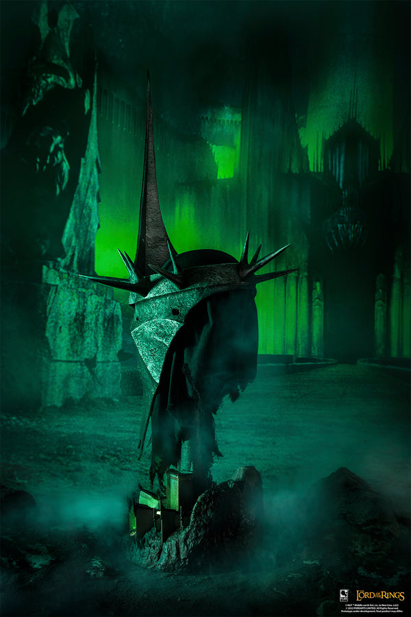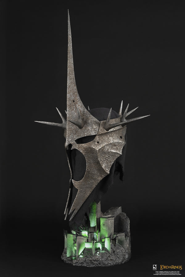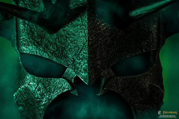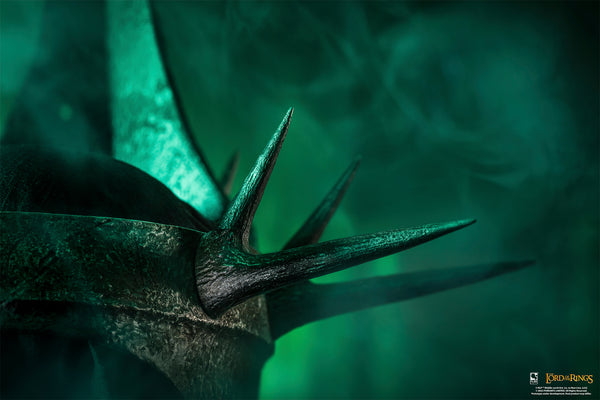 Le deuxième volet de notre série Le Seigneur des Anneaux, l'édition exclusive extrêmement limitée du masque artistique 1:1 du Roi-Sorcier d'Angmar est un style de buste incontournable à collectionner pour tous les fans de LOTR. Mesurant un peu moins de 3 pieds de haut, ce casque massif est perché sur une tour de sorcellerie étrangement éclairée à Minas Morgul.