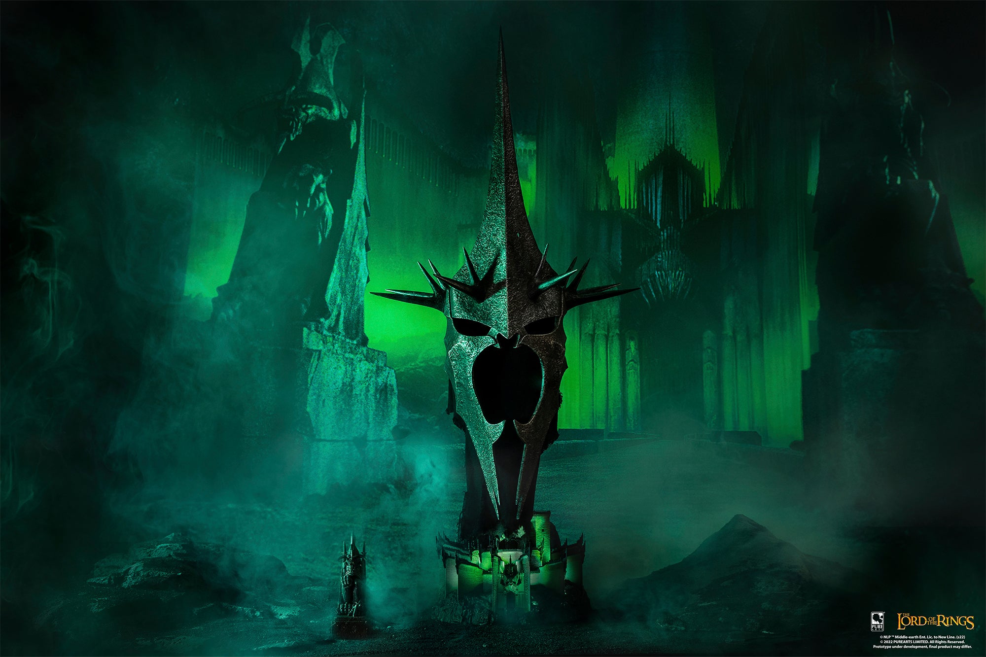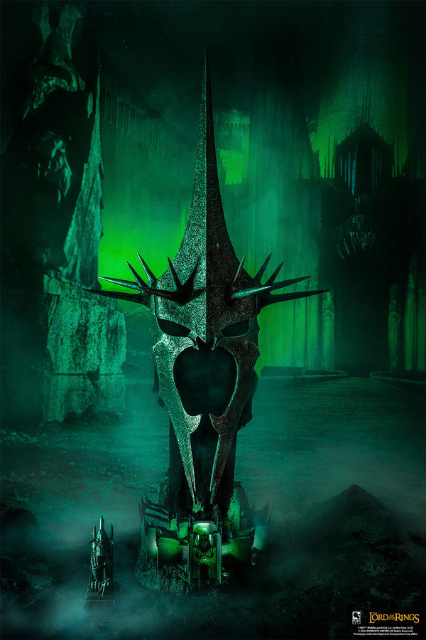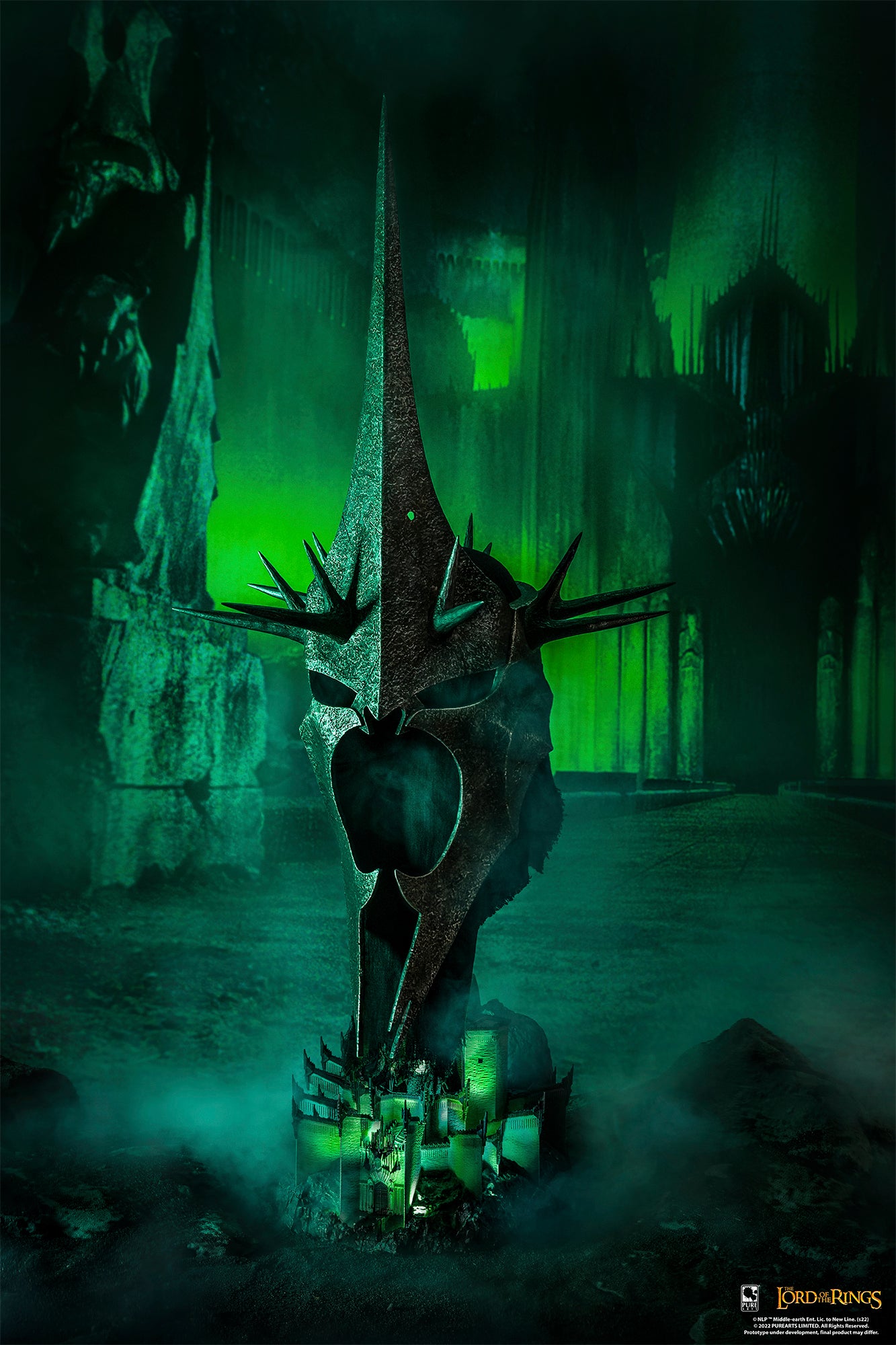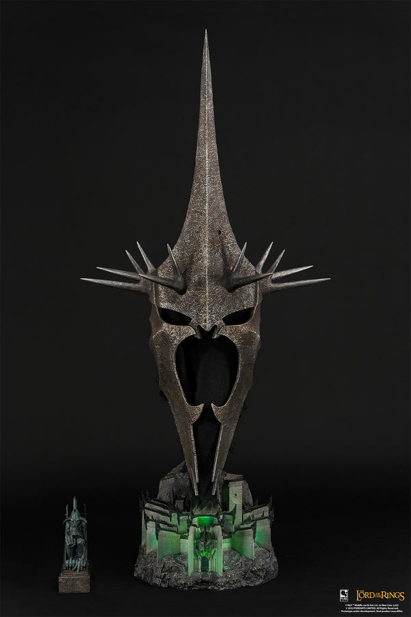 Le deuxième volet de notre série Le Seigneur des Anneaux, l'édition exclusive extrêmement limitée du masque artistique 1:1 du Roi-Sorcier d'Angmar est un style de buste incontournable à collectionner pour tous les fans de LOTR. Mesurant un peu moins de 3 pieds de haut, ce casque massif est perché sur une tour de sorcellerie étrangement éclairée à Minas Morgul.