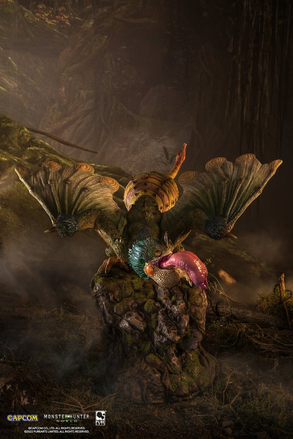 Le venimeux Pukei-Pukei du jeu Monster Hunter de Capcom a pris vie dans une superbe statue à l'échelle 1/26 par PureArts ! La statue Monster Hunter Pukei-Pukei présente des couleurs irisées éblouissantes, des détails complexes et des textures et des yeux incroyablement réalistes, posée sur une base boisée rocheuse inspirée de son environnement naturel.