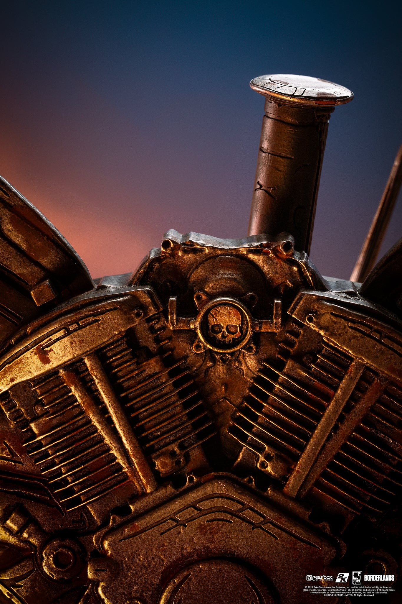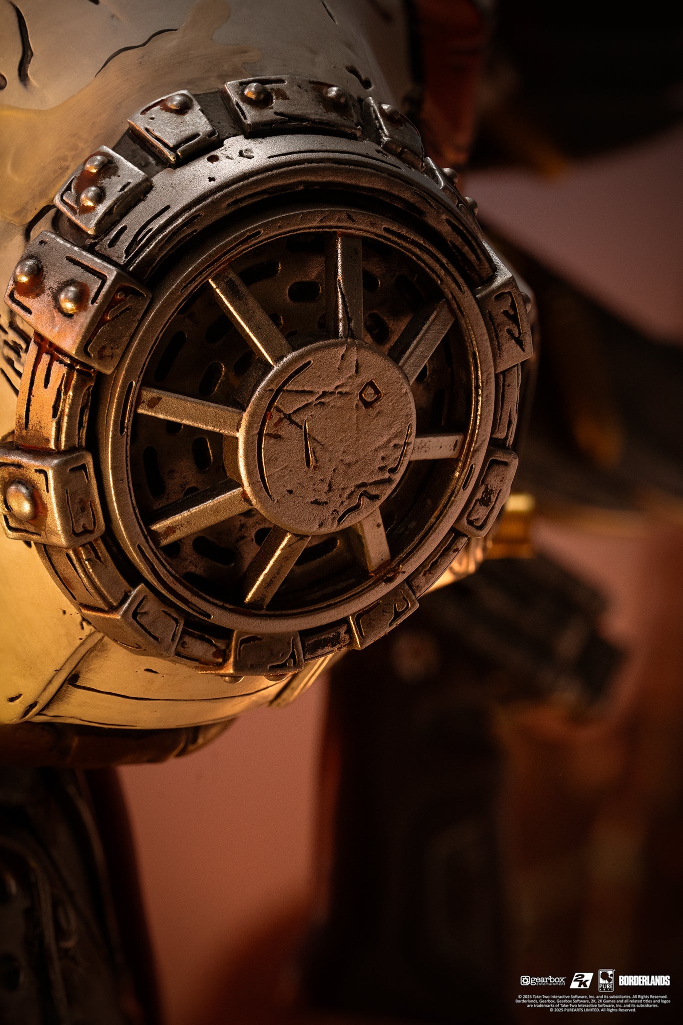 Plongez dans l'univers de Pandora avec le masque artistique Psycho Bandit de Borderlands, édition exclusive ! Avec ses yeux lumineux à LED, son socle de hache buzz rouillée et son explosion chaotique d'armes, de munitions et de moteurs, ce masque artistique à l'échelle 1:1 est un véritable temple du chaos.
