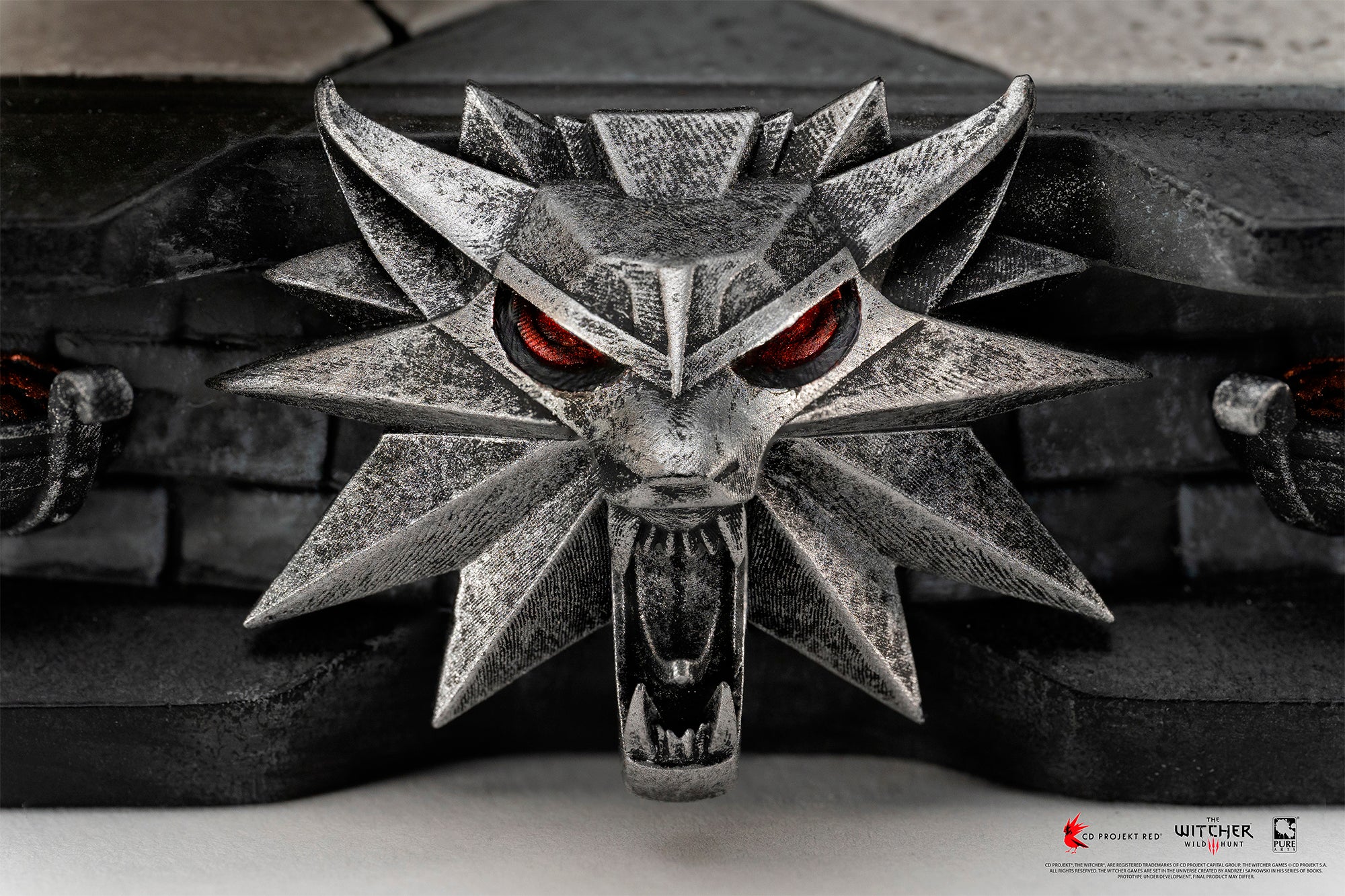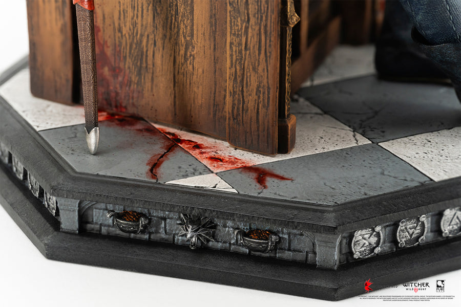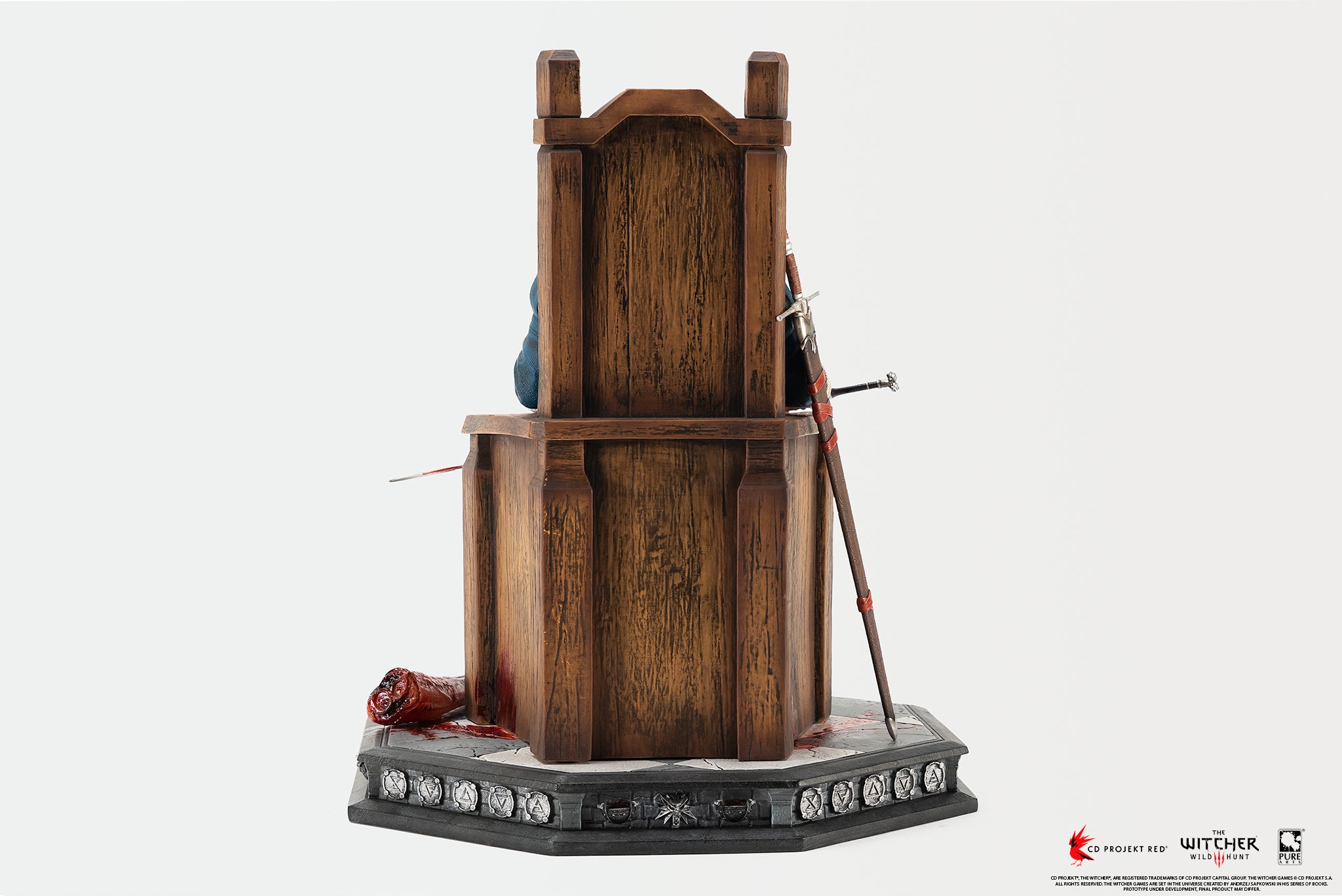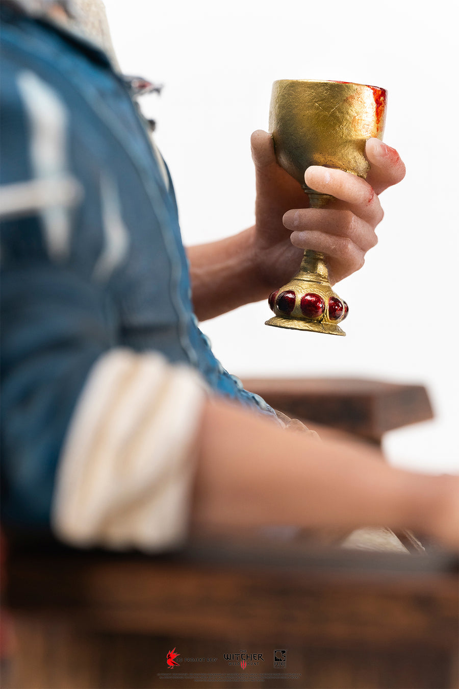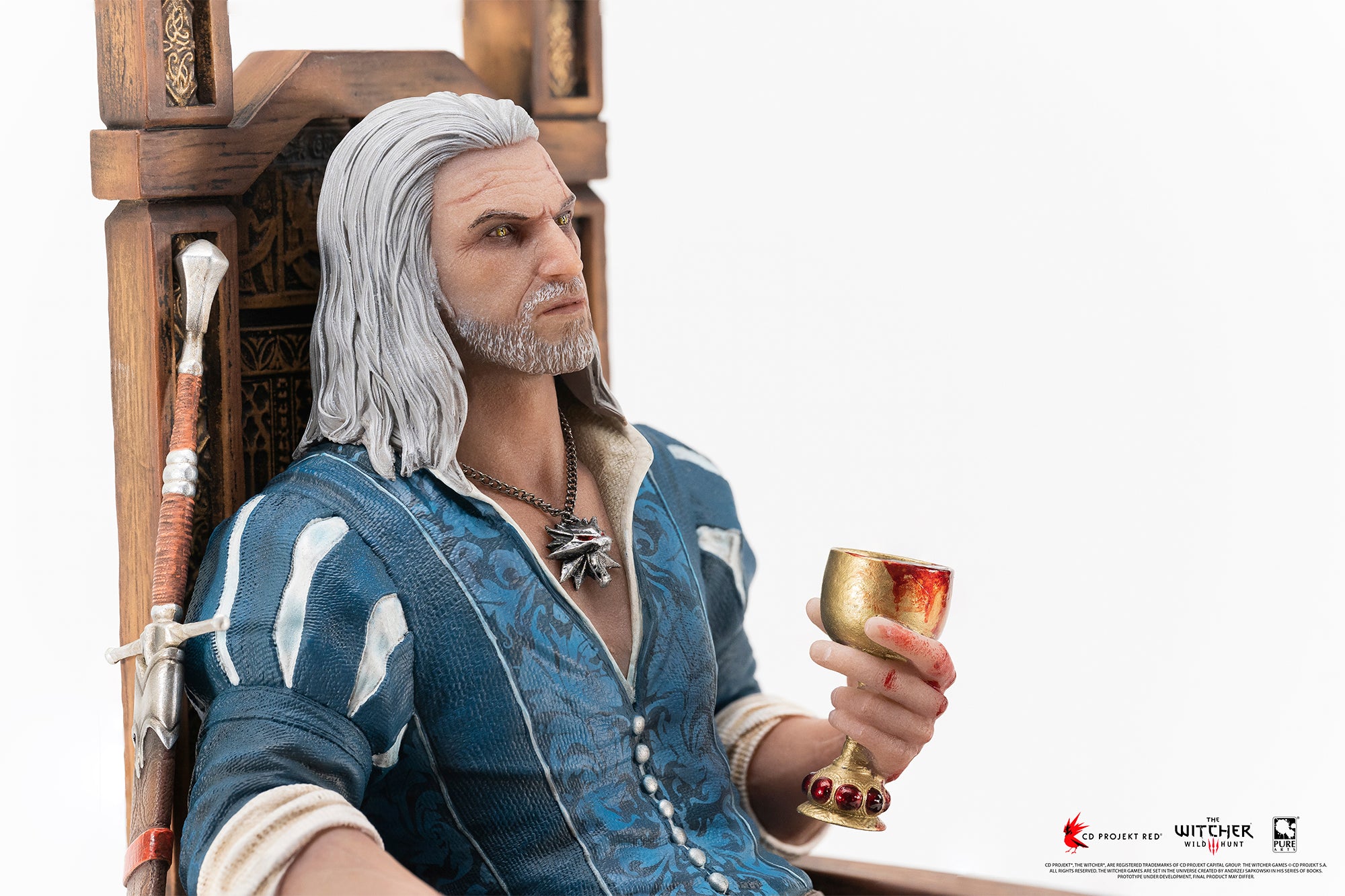 PureArts is proud to bring the stunning Blood & Wine cover art to life with Geralt of Rivia gazing intently from his throne, gripping a bloodied chalice in one hand and his enhanced griffin silver sword in the other with the severed arm of the High Vampire Dettlaff at his feet.